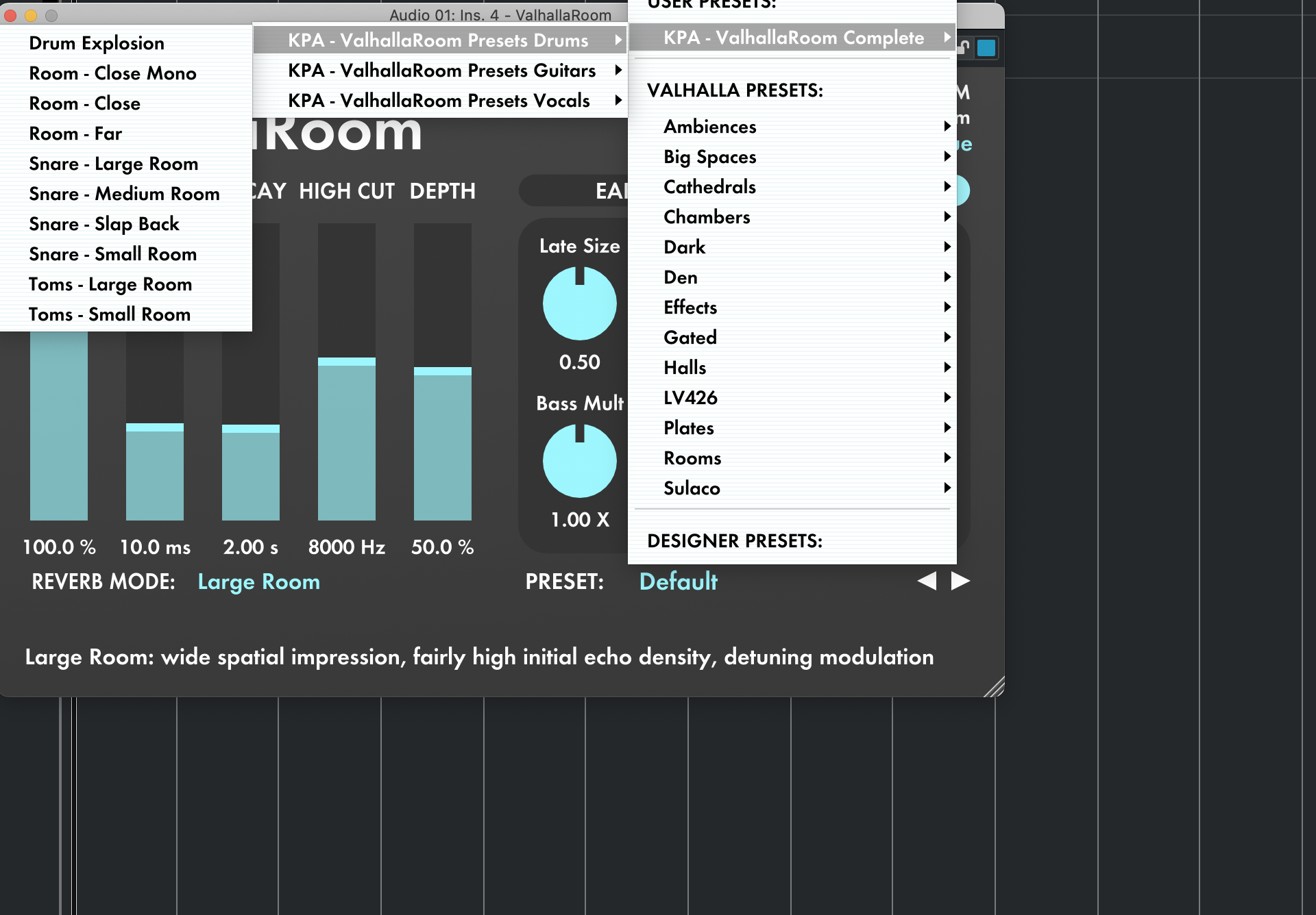 Transform your mixes with KPA – ValhallaRoom Presets: Complete, a versatile collection of expertly crafted preset packs designed to add depth, warmth, and a polished professional edge to your guitar, vocal, and drum tracks. Perfect for producers, engineers, and musicians, this bundle delivers expressive, atmospheric reverbs tailored specifically for ValhallaRoom, ensuring your instruments and vocals shine with clarity and character. The preset pack includes 30 presets.